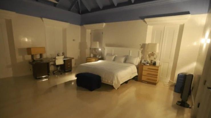 وتُظهر الصور والفيديو عدة غرف نوم في منزل إبستين الواقع في جزر فيرجن الأمريكية، بالإضافة إلى غرفة مُثبتة على جدارها أقنعة، وهاتفًا كُتبت عليه أسماء على أزرار الاتصال السريع.