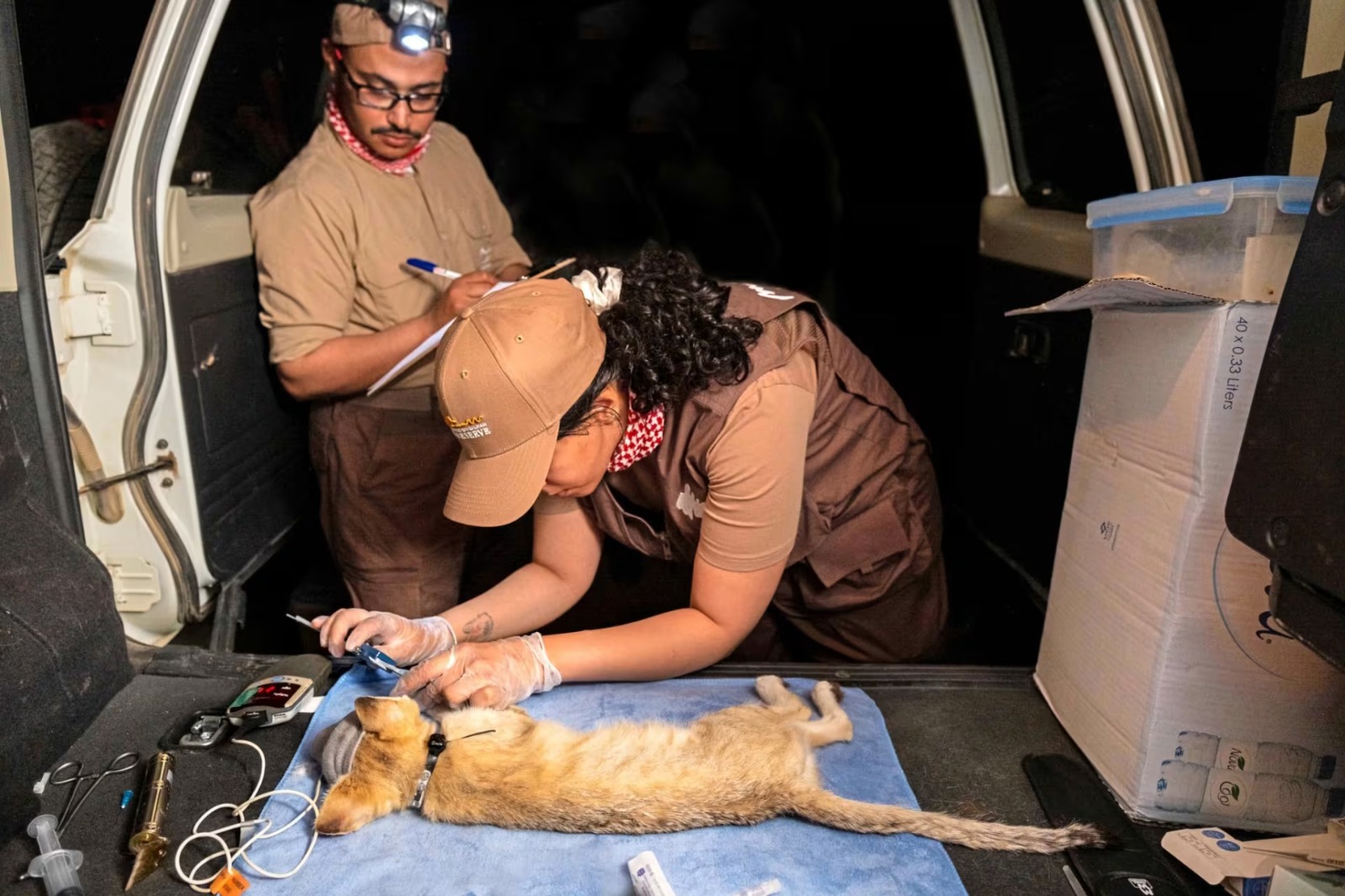 إيلاف من العلا: نجحت محمية الأمير محمد بن سلمان الملكية في تتبع قط الرمال المعروف بـ"شبح الصحراء"، حيث تمكن الفريق البحثي من الإمساك بستة من هذه القطط بأمان وتثبيتها بأطواق مزودة بنظام تحديد المواقع العالمي، وأخذ عينات لإنتاج أكبر قاعدة بيانات علمية لهذا النوع باستخدام التحليل الجيني.