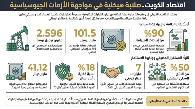 وفي ظل هذه العوامل مجتمعة، تبدو قدرة الاقتصاد الكويتي على التعامل مع تداعيات التوترات الجيوسياسية الحالية مدعومة بمجموعة من المقومات المالية والمؤسسية التي تمنحه درجة عالية من الاستقرار، وهو ما يفسر سرعة تعافي الأسواق المحلية واستمرار النشاط الاقتصادي رغم الظروف الإقليمية المعقدة.