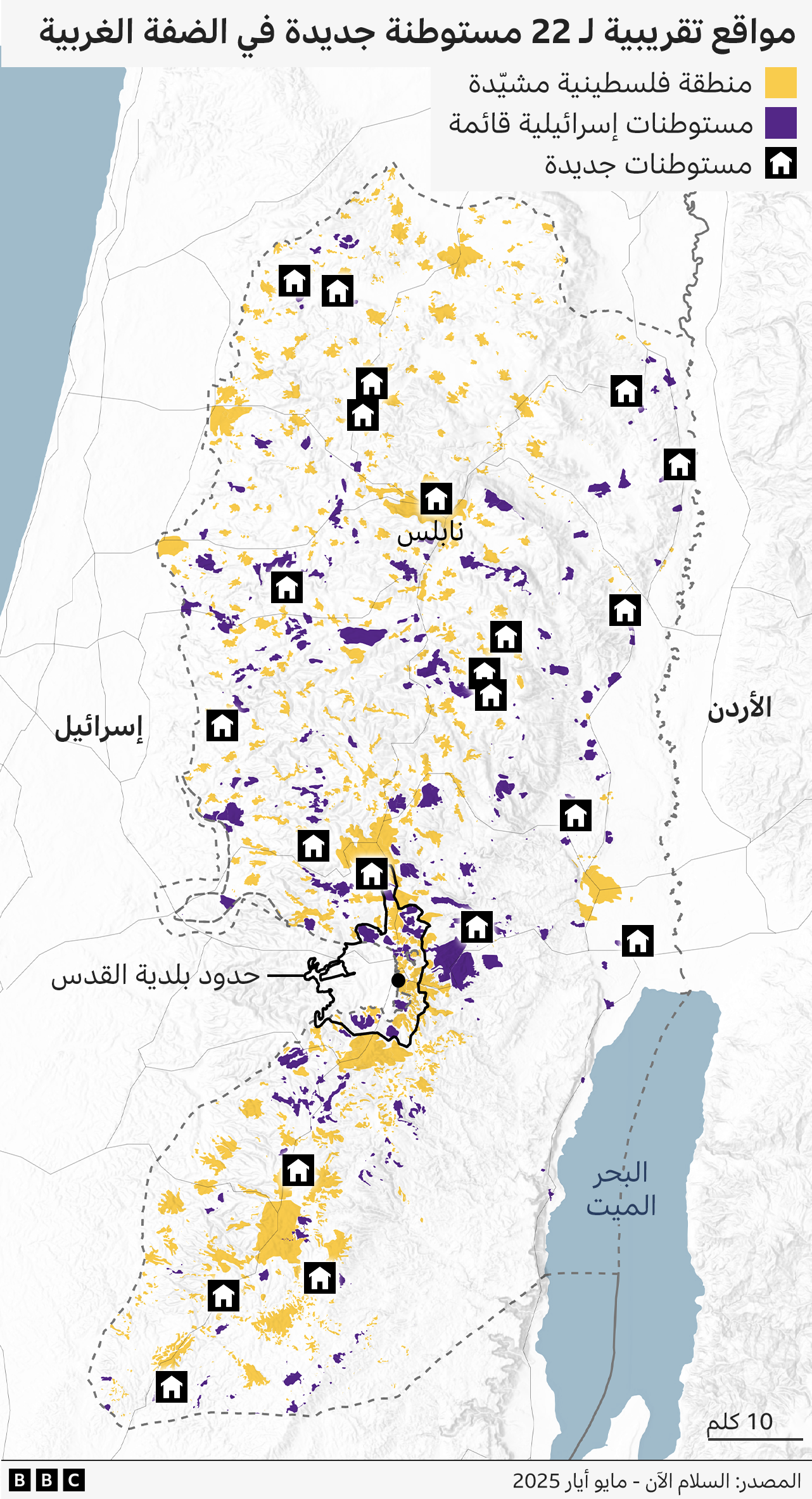 ووفق منظمة "السلام الآن" غير الحكومية الإسرائيلية، أقيمت 61 بؤرة استيطانية في الضفة الغربية منذ بداية العام 2025، أي أقل بواحدة عن إجمالي عددها في 2024 الذي شهد تسجيل مستوى قياسي.