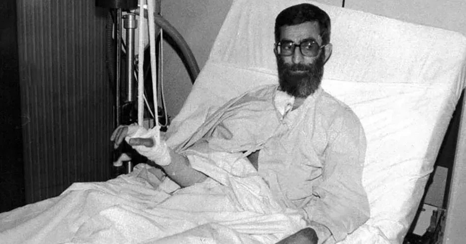 علي خامنئي بعد محاولة اغتياله في عام 1981